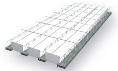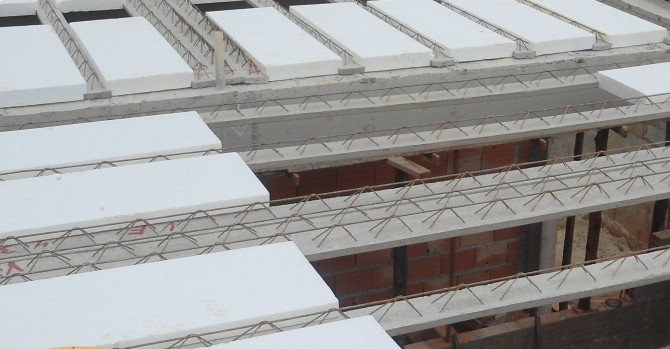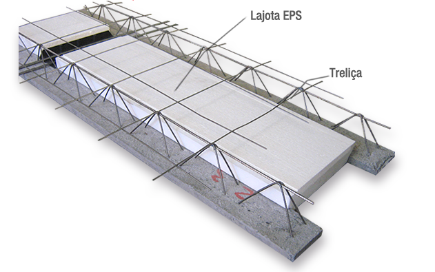 AS VIGOSTAS TRELIÇADAS DESEMPENHAM O TRABALHO DA RESISTÊNCIA, ENQUANTO AS PLACAS DE EPS COM DIMENÇÃO CINCO VEZES MAIOR QUE AS LAJOTAS CERÂMICAS, FAZEM COM QUE A DISTRIBUIÇÃO E MONTAGEM DAS LAJES MUITO MAIS PRÁTICA.